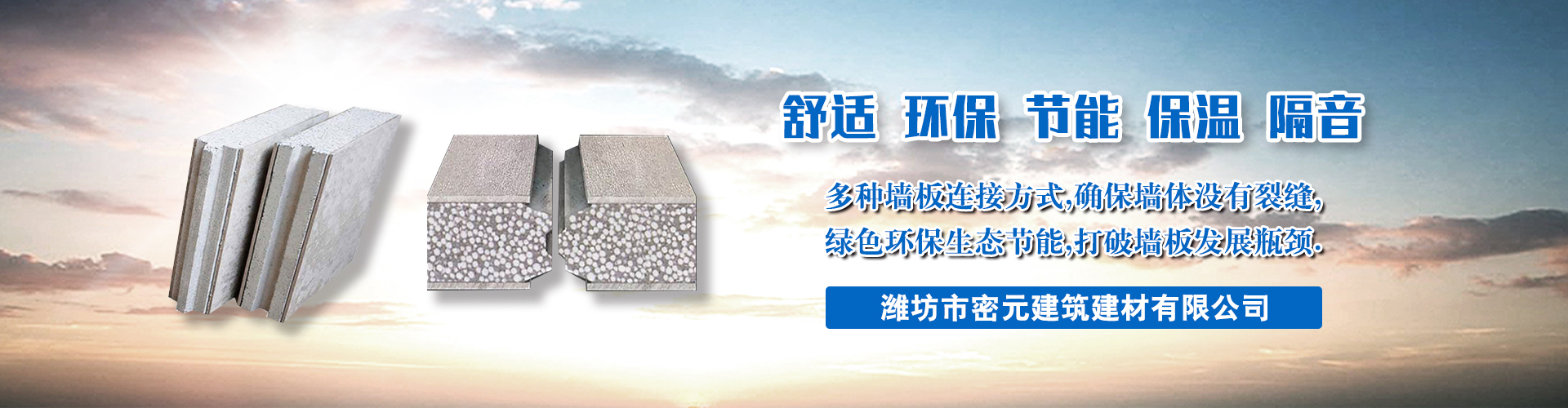 濰坊市密元建筑建材有限公司是一家高科技、綠色環(huán)保、節(jié)能降耗、致力于生態(tài)環(huán)境的墻體材料專業(yè)公司。公司專業(yè)生產(chǎn)暢銷煙臺(tái)等地的防火墻板,隔音墻板,FPB輕質(zhì)墻板,FPB輕質(zhì)隔墻板,ACC輕質(zhì)墻板,ACC復(fù)合墻板,ACC隔墻板等墻體材料。公司位于諸城市開(kāi)發(fā)區(qū)舜王工業(yè)園內(nèi),地理?xiàng)l件優(yōu)越,交通十分便利。…